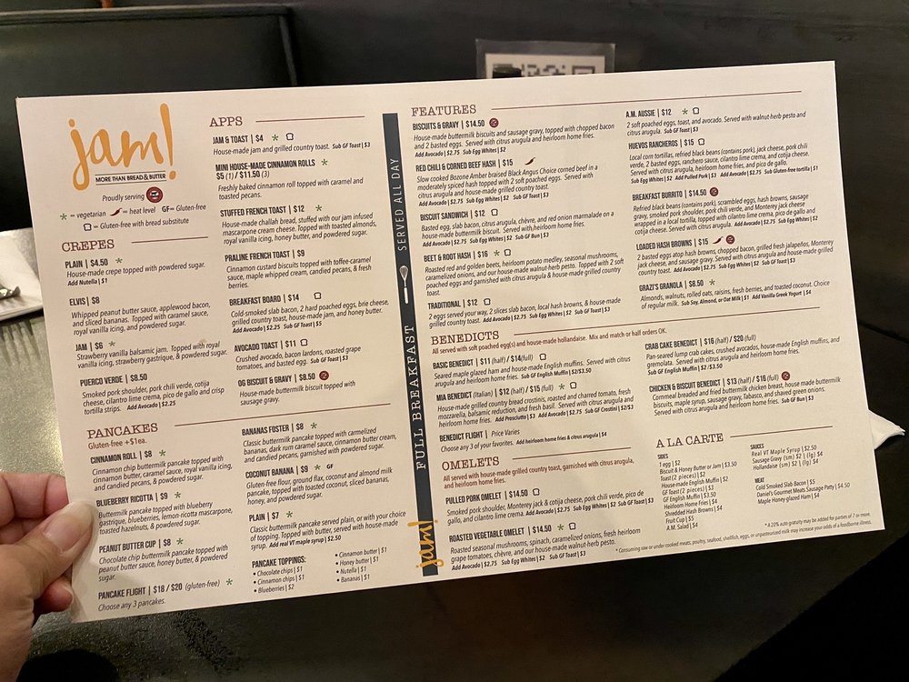“ Heard good things about Jam so a group of us tried it out. Loved it! Great fresh food and excellent service. We tried a few things- but specifically I had the Pulled Pork Omelette and a Jam crepe (crepe was small). Also enjoyed a maple syrup latte. Yummy! Definitely recommend JAM! ”